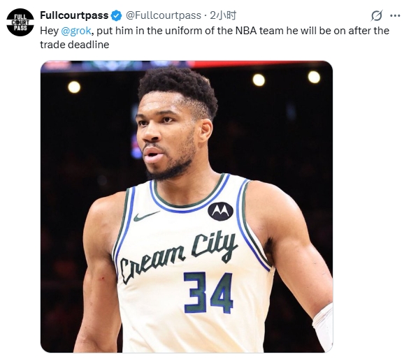 Grok将阿德托昆博P上湖人球衣